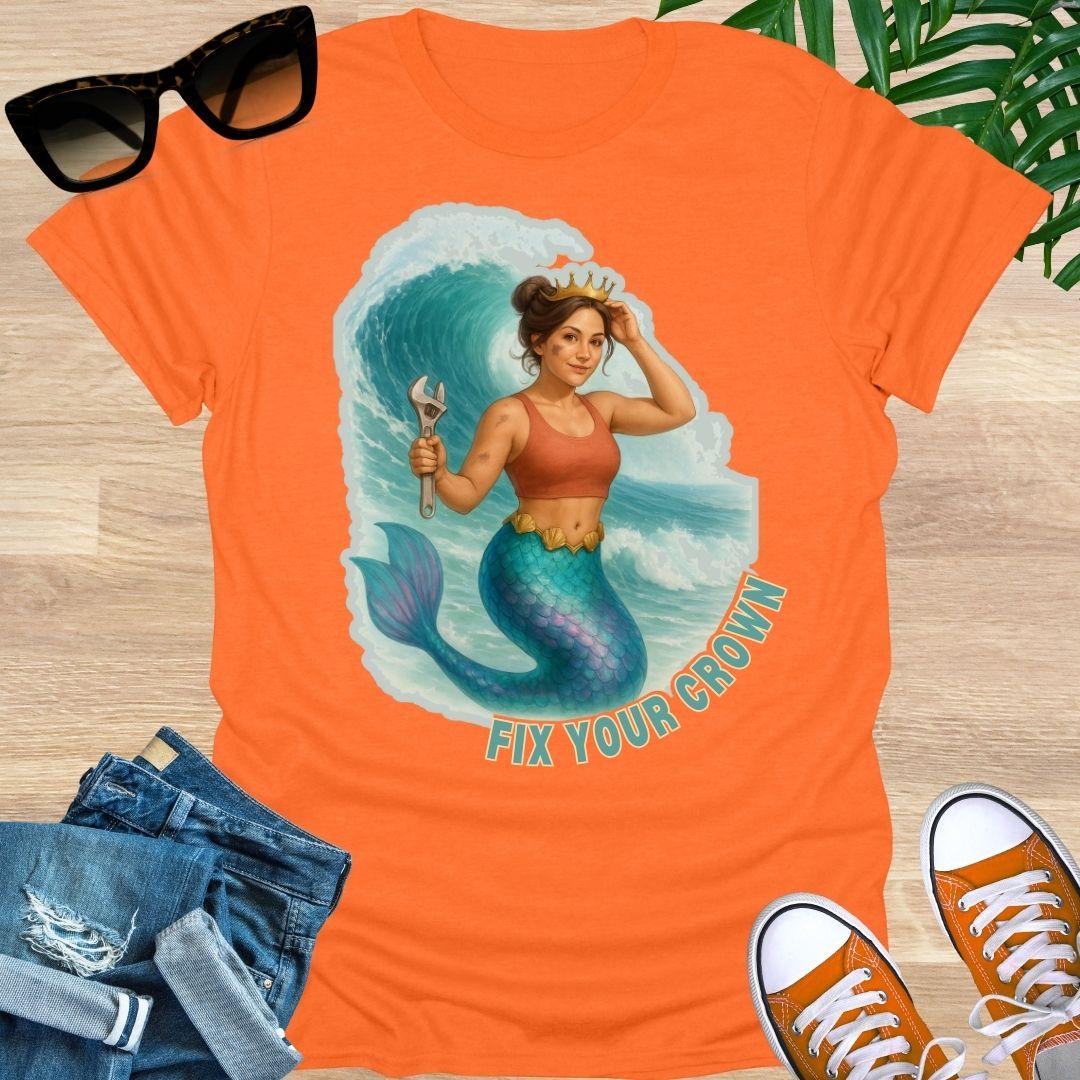 Fix Your Crown, Mermaid Mechanic, Iridescent Wave Graphic, Unisex T-Shirt
