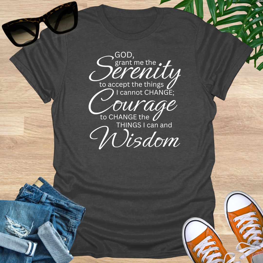 A timeless reminder for life’s most challenging moments. This tee features the Serenity Prayer—“God, grant me the serenity to accept the things I cannot change, courage to change the things I can, and wisdom to know the difference.” Whether navigating recovery, growth, or simply the day-to-day, this shirt grounds you in peace, strength, and clarity.