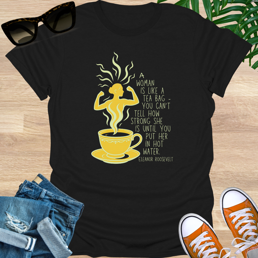 A Woman Is Like a Tea Bag, Unisex Tee – Eleanor Roosevelt